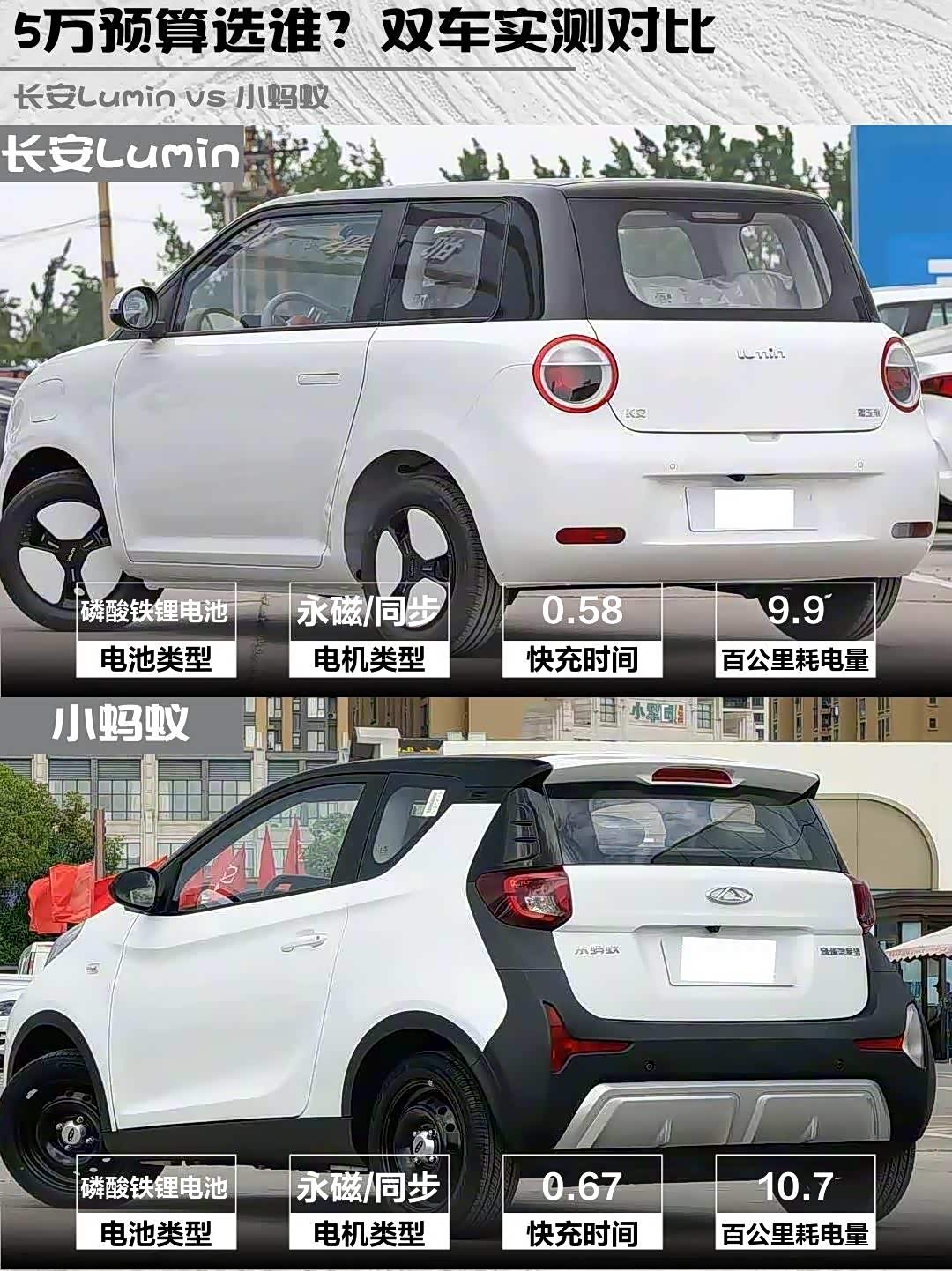 小蚂蚁251km账面数据更强,但车主反馈冬季开暖风直接打五折!长安Lumin虽然标称205km,宁德时代电池+9.9度电耗,夏天能跑出1:1续航。重点来了:小蚂蚁有快充(半小时充80%),长安只有慢充(充满要6小时),应急出行差很多!
