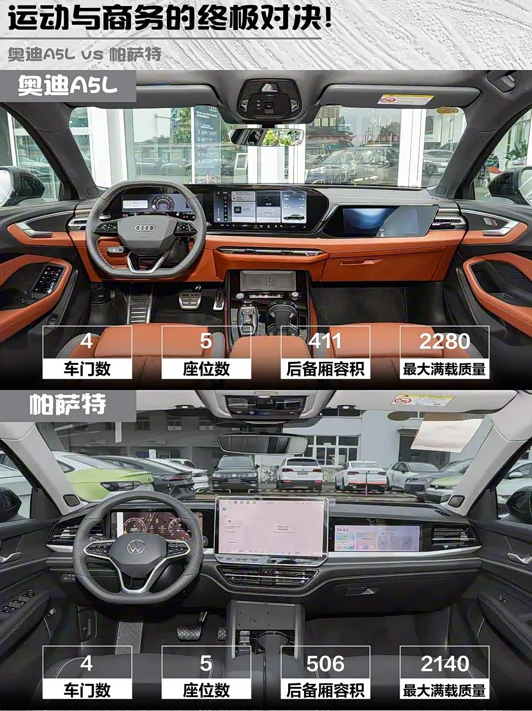 最后说价格:A5L运动版Plus指导价27.48万,帕萨特龙运版22.59万。差价5万换来的是更炫酷的灯厂科技和驾驶质感,但帕萨特的性价比真的香,L2辅助驾驶和座椅通风加热全是标配。