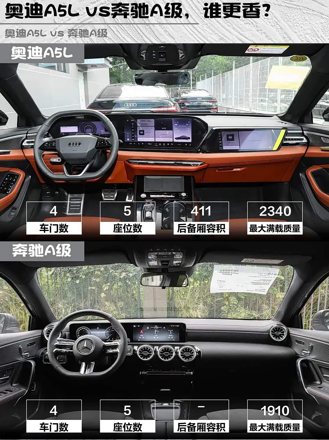 奥迪车主吐槽钢琴烤漆是指纹收集器,建议到手先贴膜。奔驰的翻毛皮座椅看着高级,但可乐撒上去就GG...另外A5L的电动尾门要选装,奔驰连选装机会都不给,关后备箱得使蛮力💪