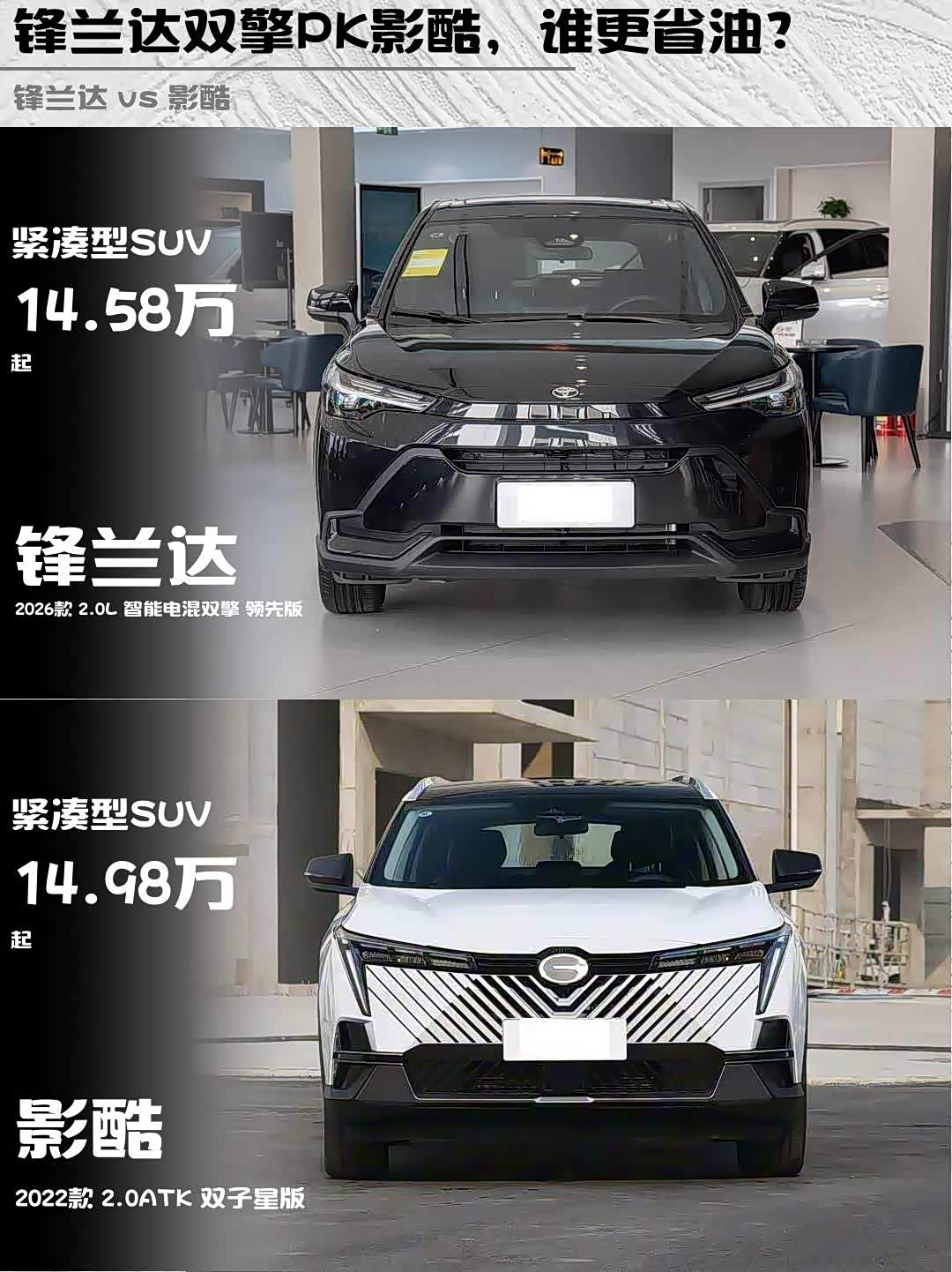 最近在纠结15万级混动SUV选哪款?刚好深度体验了2026款 锋兰达(参数|询价)2.0L智能电混双擎领先版和2022款影酷2.0ATK双子星版,掏心窝子分享真实对比感受!🔥