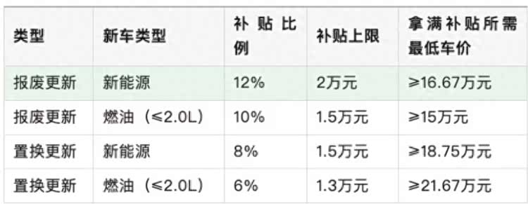 另一方面,在新能源汽车购置税优惠力度“退坡”的基础上,2026年汽车“国补”政策补贴方式从“定额”调整为按车价比例进行补贴,尽管补贴上限维持不变,但低价车补贴力度实际上也是“退坡”,新能源车价达到16.67万元以上,才能拿满报废换新2万补贴,车价达到18.75万元以上,才能拿满以旧换新补贴。