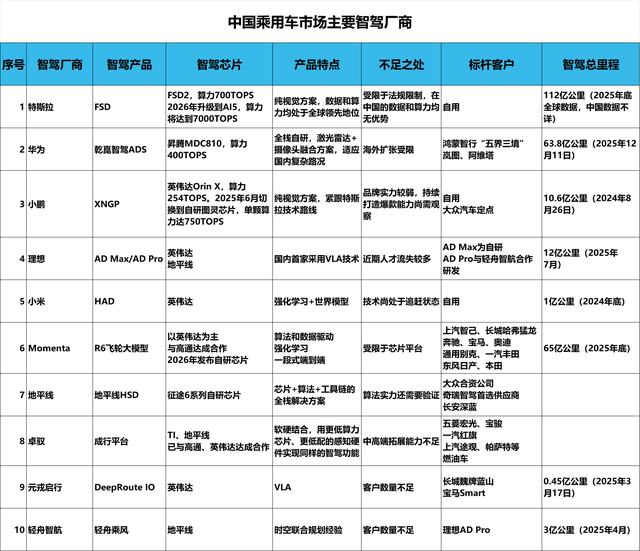 那么,哪些智驾厂商在这个残酷的市场中占据了一席之地呢?根据老冀观察,如今在中国乘用车智驾的牌局中,能上牌桌的玩家至少有10家: