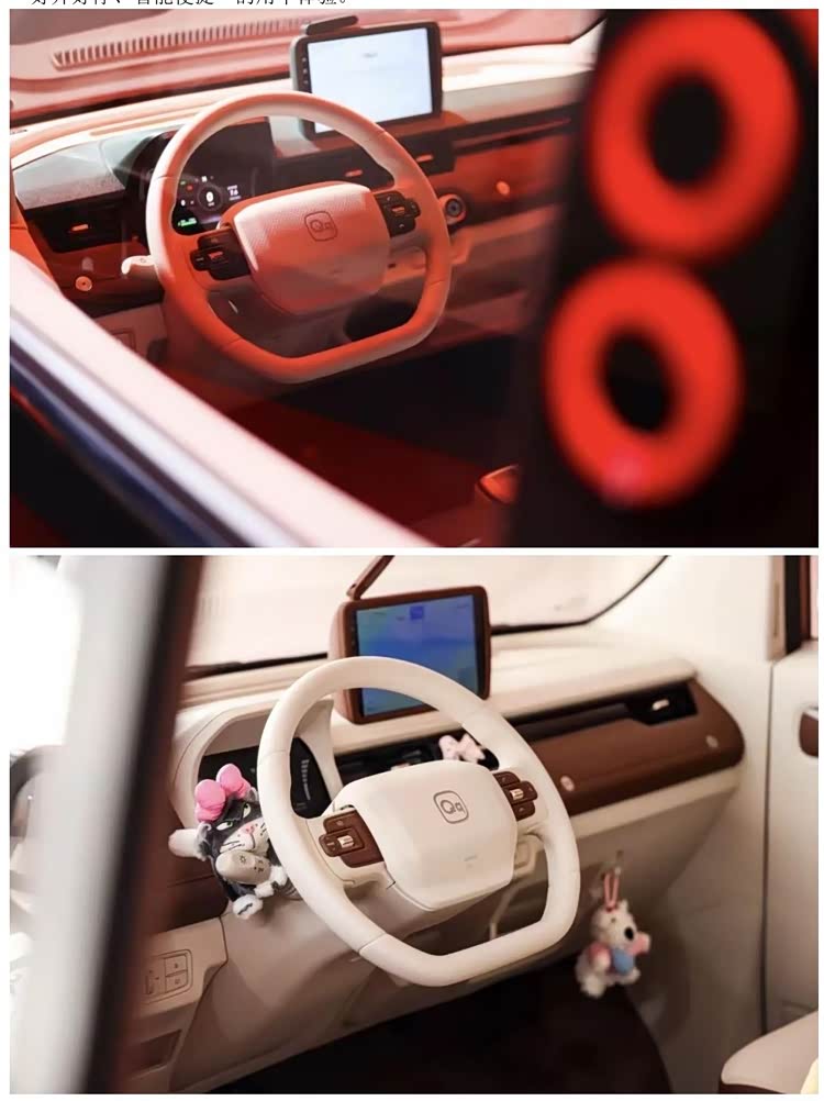 全新冰淇淋坚守 “四好高定小车” 核心产品理念 —— 颜值出众、实用性强、趣味十足、品质可靠,进一步强化 “两门高定出行潮品” 的市场定位,构建起覆盖外观、内饰、空间、性能、智能、安全的全维度高定体系。在产品实力方面,新车凭借 “四大同级独有” 与 “十项同级领先” 的优势打造技术壁垒。同级独有的皮质多功能方向盘、主驾补光化妆镜、3 个可拓展 1/4 螺纹接口及可加装行李架 & 小书包配置,尽显越级诚意;220km 续航里程、22kW 直流快充、高强度车身结构等十项同级领先技术,为城市日常出行与短途出游提供坚实保障。此外,4 米转弯半径、坡路辅助 + 蠕行模式、无感启动及 APP 远程操控等功能,进一步提升了车辆 “好开好停、智能便捷” 的使用体验。