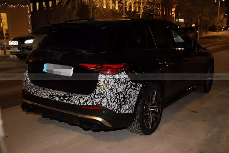 车身侧面既然是改款车型,白车身当然不会有明显的变化,轮毂也没有修改,就不需要过多赘述,造型依旧经典。车尾部分尾灯造型似乎也没有调整,没有换装三叉星光源,不知是仍在测试,还是打算节约成本,后保险杠部分略有伪装,但似乎影响不大,双边四出排气和扩散器显示了AMG车型的身份,金色的装饰条增强了豪华感。