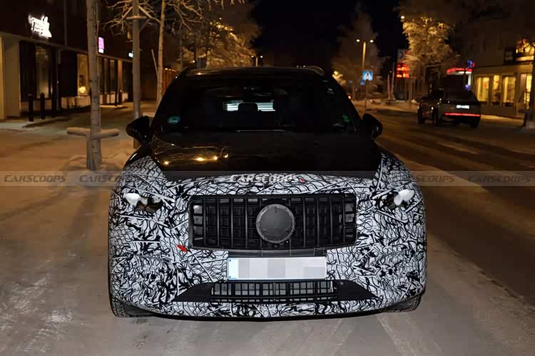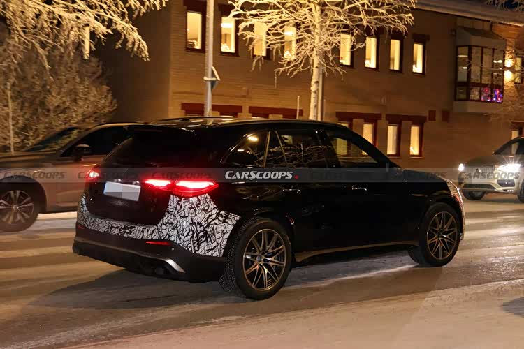 具体来看,在外观方面,前脸部分看起来是一款AMG GLC 43车型,因此采用了直瀑式的中网填充,但似乎中网尺寸会略大一些,提前向新一代的大嘴风格过渡,左右两侧大灯则是更明显的变化,采用了三叉星式的日行灯光源,配合略开眼角式的扁平大灯组,未来新款车型推出之后,最明显的不同应该会集中于此,倒是符合改款车型的特征。前保险杠部分三段式镂空装饰不会缺席,保持了运动感。