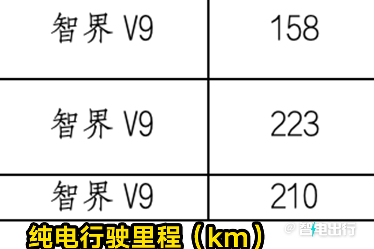 智界V9对磷酸铁锂和三元锂电池版本都进行了申报,电池容量从36.019kWh-53.352kWh,3个版本的申报续航分别是158km、223km、210km。
