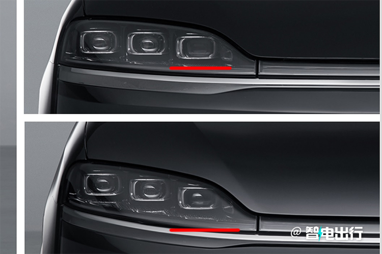 智界V9前脸设计延续鸿蒙智行的家族风格,可以选装投影大灯,和其他拥有投影大灯的车型一样支持自定义迎宾灯语和投影。