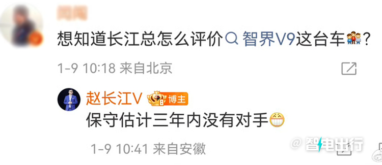 车家号·0浏览·2026-01-14 11:42 · 北京智界汽车执行董事及执行副总裁赵长江在评价 智界V9(参数|询价)时表示:保守估计3年内没有对手。