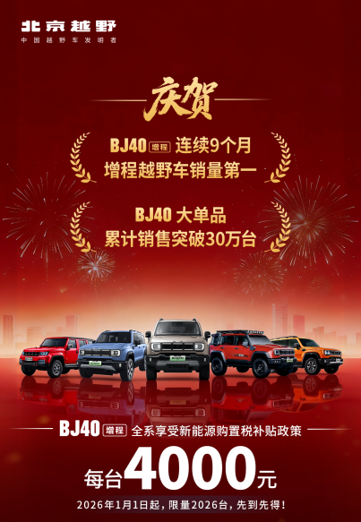 国家殿堂的认证,奠定的是权威与高度;而市场的热烈反响,则验证了其价值的真实。 实际上,十多年来,BJ40全系持续火爆,历史累计销量已突破30万台,奠定了深厚的口碑基础。而BJ40增程自2025年4月上市以来,已连续9个月稳居增程越野车市场销量榜首,展现出强劲的产品实力。
