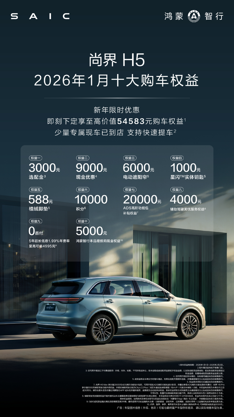 其中,购置税兜底政策早在 2025 年 12 月 1 日结束的尚界 H5,此次新增了一项现金权益优惠。