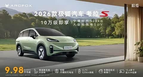 车家号·0浏览·2026-01-14 14:25 · 安徽近日,极狐品牌官方宣布,旗下紧凑型纯电SUV——2026款考拉S正式登陆市场。新车共推出3款配置版本,售价覆盖9.98万至11.98万元,CLTC工况纯电续航里程可达520公里。同时,官方为新车配备了三重核心保障承诺,包括“8年或15万公里电池衰减超限只换不修”“电池自燃烧一赔一”以及“三电系统终身质保”。