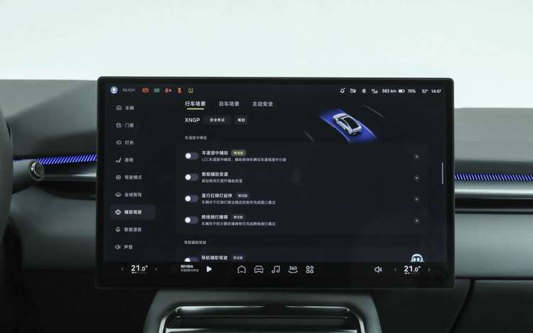 小鹏P7走“豪华+智能”路线,兼顾驾驶与乘坐体验。15.6英寸中控屏可左右滑动,导航、看电影切换自如;87英寸AR-HUD把导航投在挡风玻璃上,安全又方便。车机反应迅速不卡顿,23个扬声器的音响音质堪比移动影院,装配的真皮座椅乘坐更舒适,长途出行乘坐也不累人。