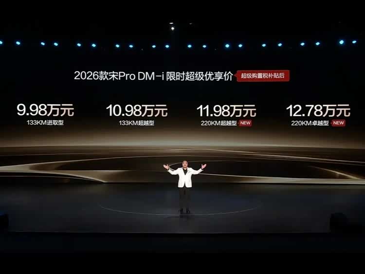 这一次,它不再局限于新能源赛道内的竞争,而是将目光直接投向本田CR-V、丰田RAV4等传统合资燃油SUV。当同级合资燃油车仍凭借品牌光环与“可靠”形象坚守15-20万元价格区间时,2026款宋Pro DM-i长续航版以11.98-12.78万元的亲民定位,提供了纯电通勤的自由、跨省旅行的从容以及全维智能的体验,将家庭出行的价值标杆提升至全新高度。