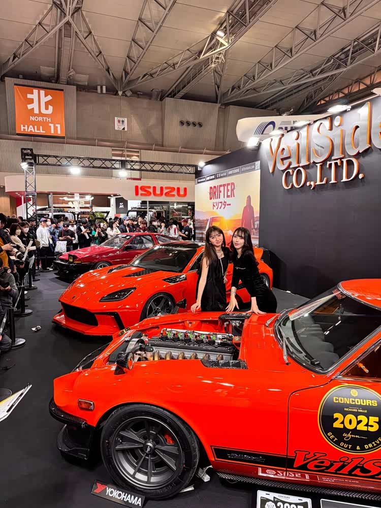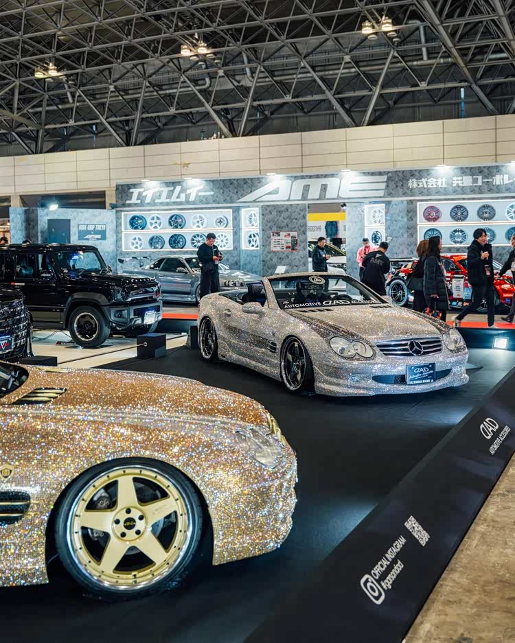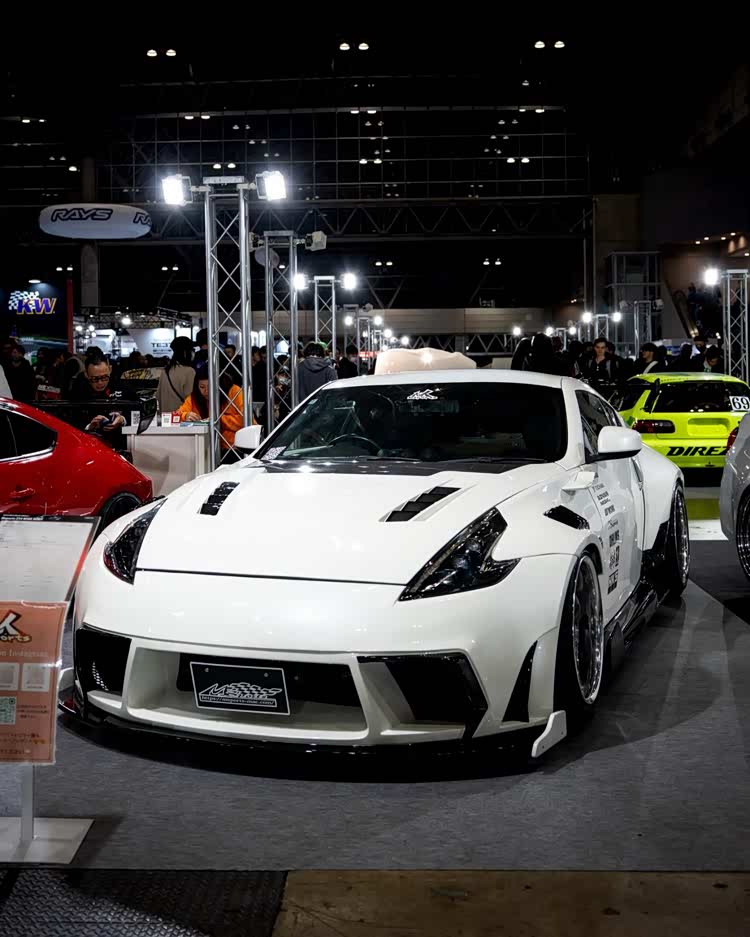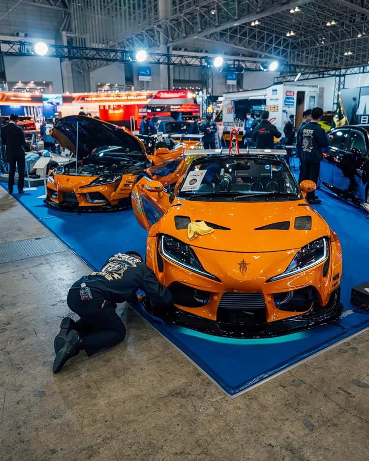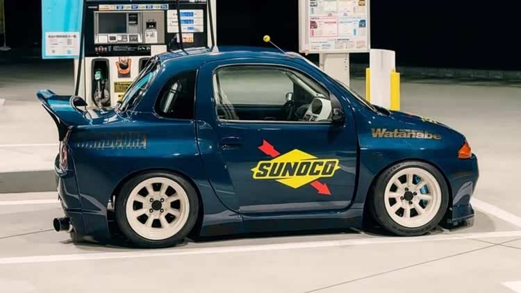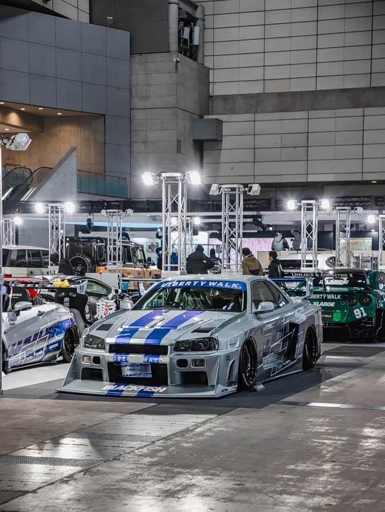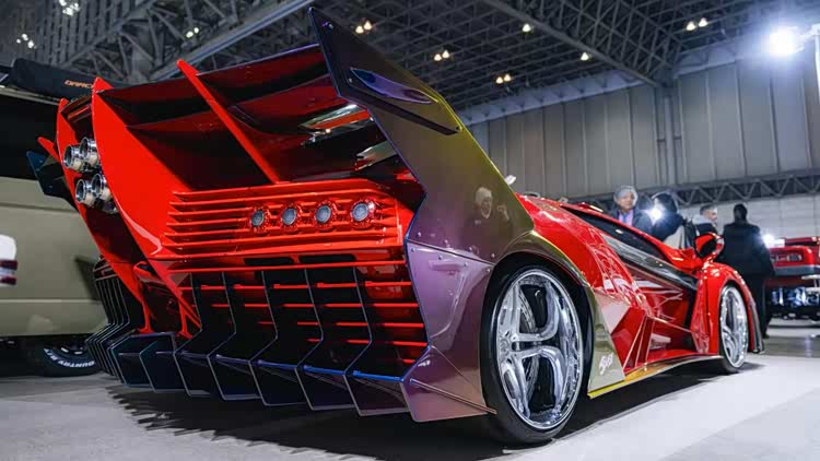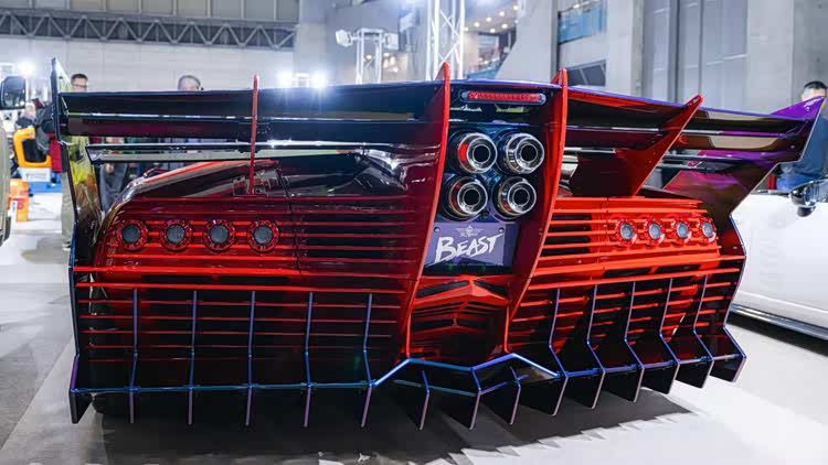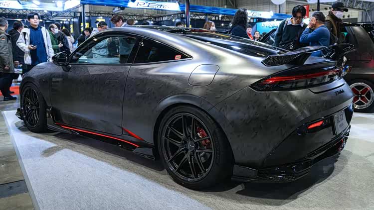 当然,东京改装车展也不是汽车品牌的主秀场,民间的改装作品才是展会的最大亮点。知名宽体改装品牌Rocket Bunny将一台铃木Twin(一台尺寸十分袖珍的K-Car),改造成了迷你日产Skyline GT-R R32的样子,而且还带着经典的RB宽体,样子还怪萌的!它搭载的依旧是铃木那副只有0.658L排量的小型发动机,27马力的动力输出可能老头乐还开得比它快吧!