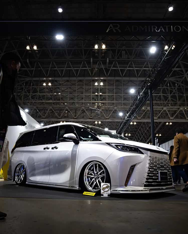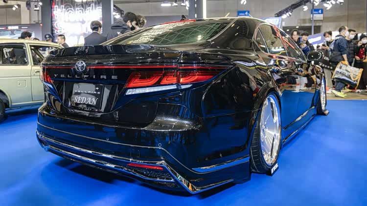 日本自动车大学的学生每年也都会带来让人惊艳的改装作品,今年也不例外,其中一个作品更是引来丰田章男的围观和点赞。它原本是一辆雷克萨斯LS460,然后学生创意地把丰田威尔法的前脸和尾灯,通过修改后移植到这辆LS身上,再搭配了一套21寸的Work DH轮毂和气动避震,打造出经典的日系VIP行政改装车造型,十分惊艳。