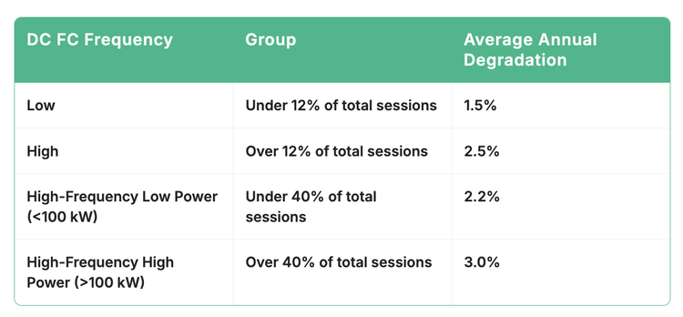 这项研究显示,与经常使用功率低于100千瓦的充电桩相比,经常使用功率超过100千瓦的充电桩会导致电池损耗率增加一倍。