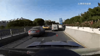 大曲率弯道路线的突发情况,更能考验智驾系统的反应能力。前方小鹏G9因弯道事故,车辆直接被接管了。而紧随其后的星纪元ES,凭借其猎鹰700智驾系统,迅速识别右侧可通行空间,果断变道绕行后平稳汇入主路,整套操作流畅果断,堪比驾驶经验丰富的老司机。日常出行,谁没遇到过突发情况?如前车急刹、路口窜出电动车、弯道遇到事故等,星纪元ES能够在这种复杂动态环境中,迅速做出决策并稳定执行,帮我们轻松化解大部分突发风险,这才是我们用户需要的“真智驾”。