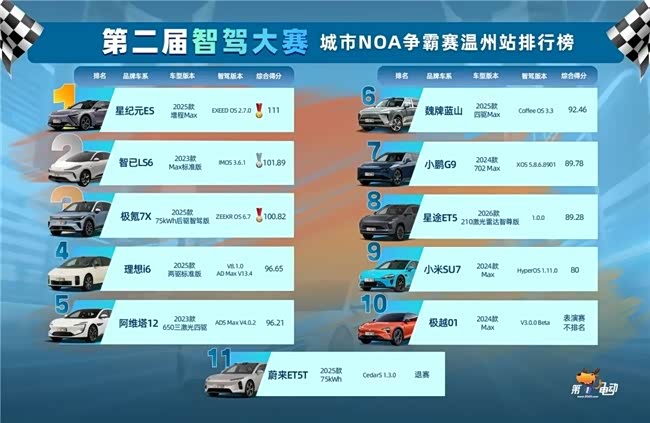 近日,我关注到第一电动汽车网举办的第二届智驾大赛。这场测试集结了当前市场上多款热门新能源车型,包括小米SU7、理想i6、智己LS6等。其中一款黑马选手着实让我震惊,那就是星途品牌旗下的高端新能源车型——星纪元ES。这台车已经连续参加宁波、台州等多站比赛,并两次凭借“全程唯一0接管”的硬核实力拿下冠军。尤其是刚结束的温州站,它不仅以“全程唯一0接管”的成绩夺冠,更以最短的107分钟完赛时间,展现出超越同级的智驾实力。