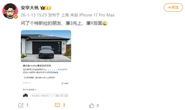 廉价版特斯拉Model Y上架官网!或低于20万起,欲“横扫”新势力