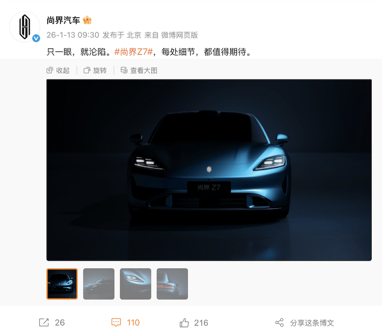 首款车型销量高开低走、面临市场竞争压力,这或许是尚界品牌近期动作频频、尤为卖力宣传第二款车型Z7的重要原因。