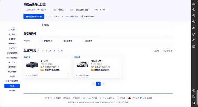 以汽车之家为例,搜索8-10万,续航200-300km的插电混动产品,结果目前只有2个,分别是比亚迪秦和海豹。