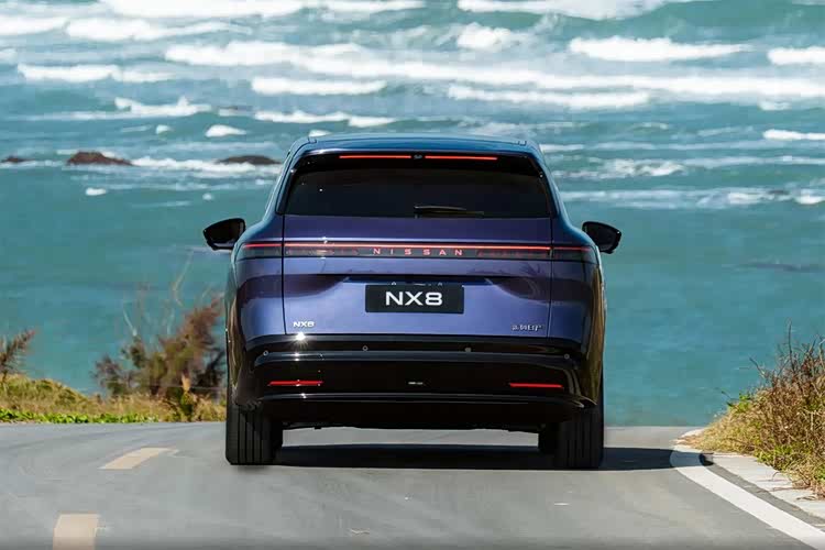 新车的前脸造型风格和之前上市的日产N6保持一致,大灯为分体式设计,上部是横贯式的灯带,前杠两侧是L形的灯组,中间的车标也是能够点亮的。前杠上部是封闭式造型,下部的中网使用了横向的格栅设计。