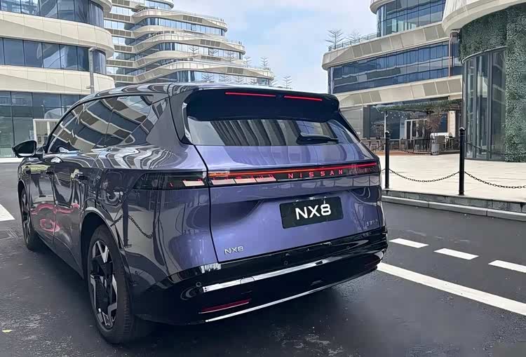 整个车身设计的非常饱满,没有采用特别复杂的腰线设计,搭载的是隐藏式门把手设计,再加上靓丽的车漆颜色,看起来还是非常有质感。车轮周围都有一圈黑色镀铬轮眉,车身底部也有贯穿式的黑色镀铬条,再加上炫酷的轮毂造型,使得整个车身拥有不错的视觉冲击感,能够让人感受到很足运动感。不得不说,日产NX8的车身颜色搭配,还是很符合当下年轻消费者的审美。从此前的申报信息可以获悉,该车长4870mm、宽1920mm、高1680mm,车身轴距为2917mm,属于中大型SUV车型,预计会有很不错的空间表现。
