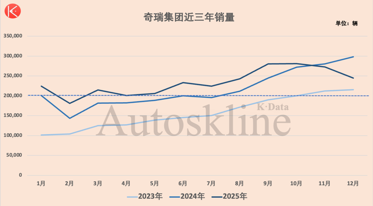 对于2026年,奇瑞集团划定了320万辆的年度销量目标,较2025年增长约14.03%,开始向300万辆发起冲击。