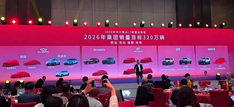 为实现全新目标,奇瑞集团计划2026年推出17款车型,其中全新车型7款。