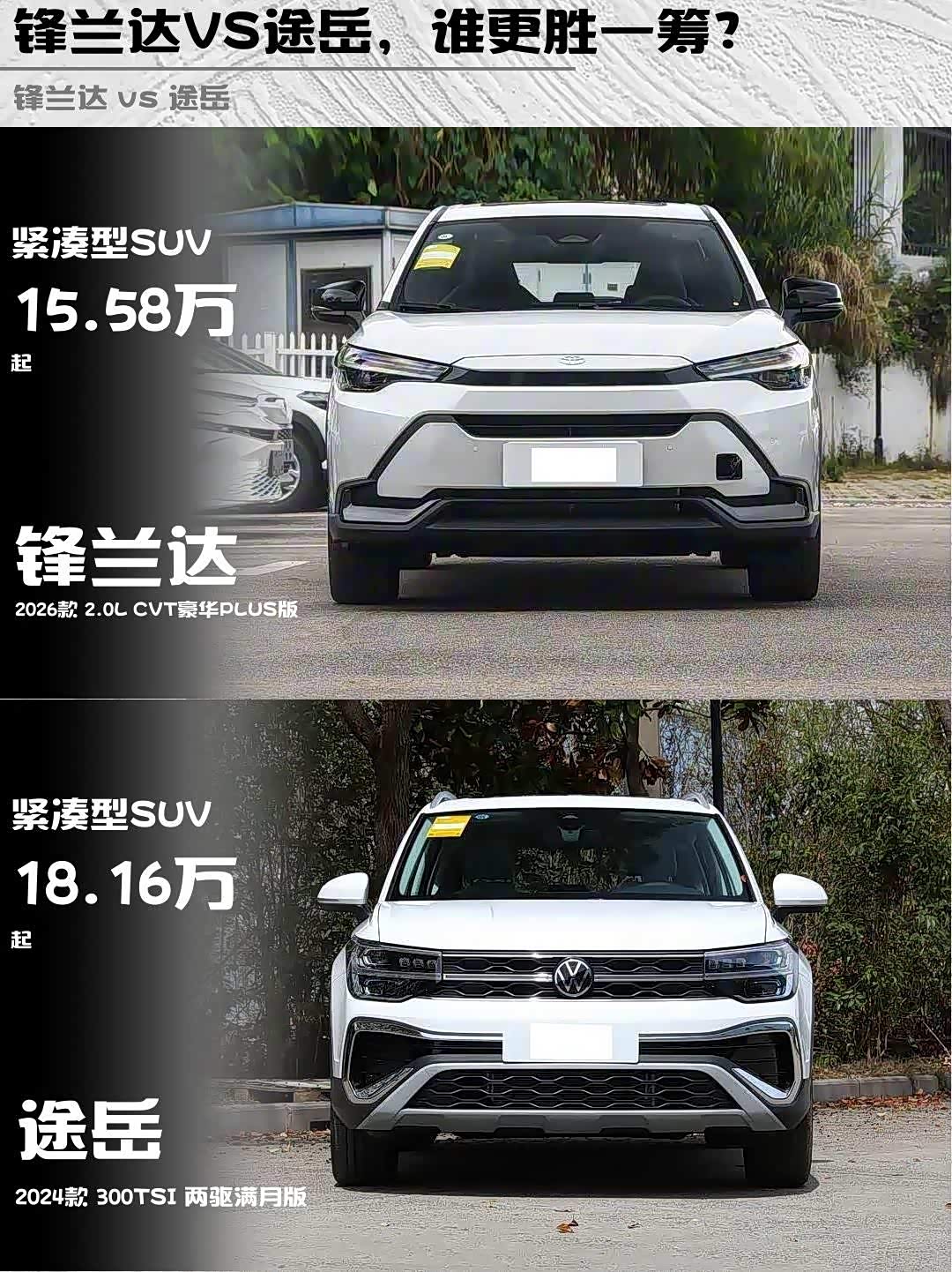 车家号·0浏览·2026-01-15 08:38 · 北京最近在纠结15万级合资SUV选谁?深度试驾了2026款 锋兰达(参数|询价)2.0L CVT豪华PLUS版和2024款途岳300TSI两驱满月版,干货对比来了!🔥