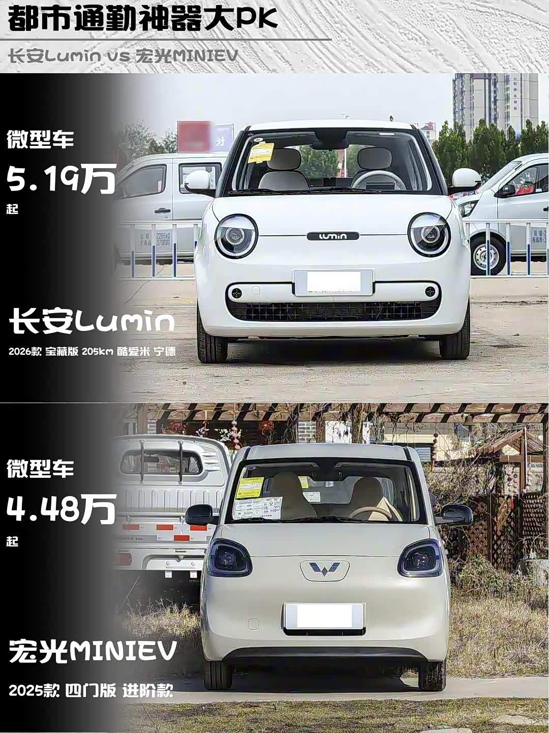 最近在纠结长安Lumin 2026款宝藏版和 宏光MINIEV(参数|询价) 2025款四门进阶款的小伙伴看过来!👀 作为两款5万级纯电代步神车,实测对比干货送上~