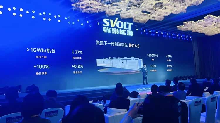 除了这些产品,蜂巢能源还发布了第四代叠片机,从第三代的“飞叠8片”直接升级为“飞叠16片”,即在一台设备上同时叠16片,比3.0的叠片效率提升了100%,远远超越现有的叠片技术和卷绕技术,同时质量也绝对领先。