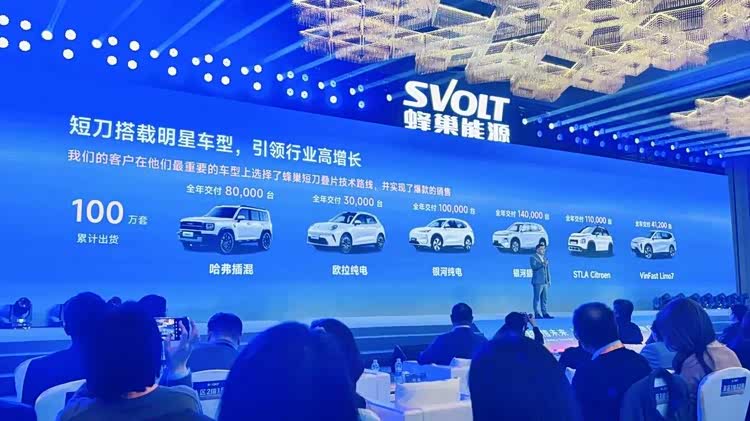 蜂巢2022年开始推出短刀,累计出货量已经超过100万套。“客户在他们最重要的车型上选择了蜂巢短刀叠片技术,并实现了爆款的销售。”杨红新说。