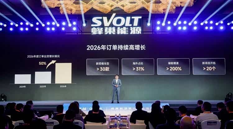 销售方面,2026年的订单仍将持续保持高增长。“我们新搭载车型的数量超过30款,海外占比仍将超过30%,储能增速超过200%,新项目开拓超过20个。”
