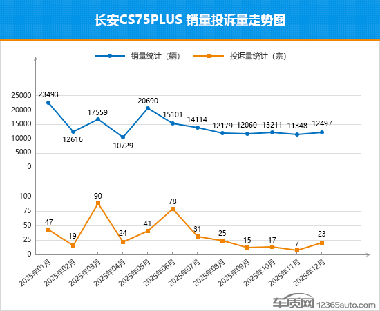 作为长安汽车重要的销量担当,长安CS75 PLUS近一年的市场表现略显平淡,在经历了2025年1月和5月两次冲顶后,月销量整体呈现走低态势,但始终稳定保持在万辆以上。12月,其销量迎来小幅回升,环比上涨10.1%,再度跻身紧凑型SUV月度销量榜前10名。与销量走势类似,其月投诉量自2025年6月再登高点后开始一路走低。不过,12月的投诉量出现触底反弹,环比涨幅翻倍。据车质网数据显示,长安CS75 PLUS的投诉核心仍聚焦质量问题,主要集中在车身附件及电器方面,具体故障点为“车载互联故障”、“驾驶辅助系统故障”等。尽管厂家对于长安CS75 PLUS的投诉问题很重视,且响应积极,但问题解决率不足15%,在自主品牌中排名靠后。结合其12月的投诉销量比数值可以看到,与11月相比有明显提升,整体表现出现退步。从目前的市场走势和口碑表现来看,长安CS75 PLUS短期内恐难摆脱低迷状态,若想重塑竞争力,需优先解决核心质量痛点并提升问题解决率。