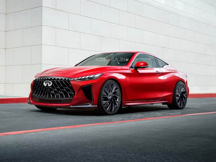 至于外型走向,Kolesa的Nikita Chuyko近期发布的预想图,替可能重生的 Q60S(参数|询价)提供了相当具体的想象空间。 整体轮廓延续旧款Q60流畅、低扁的双门比例,侧面线条简洁而有张力,但车头与车尾则变得更加锐利且具侵略性。 巨大的黑化水箱护罩占据视觉焦点,两侧夸张的进气口搭配横跨上缘的LED头灯,营造出强烈存在感。
