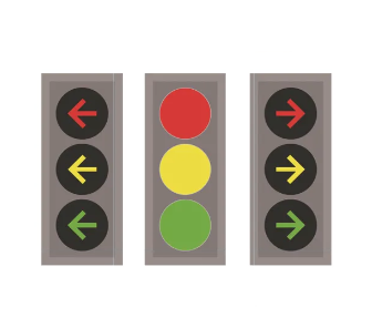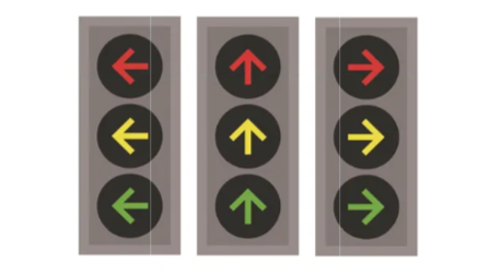 全红必停:根据灯组的组合,当所有灯均为红灯时,无论箭头灯还是圆盘灯,车辆根据自己的行驶方向停车等待信号灯。右转箭头灯不亮且无“红灯禁止右转”标志时,可在确保安全、礼让行人的前提下右转。