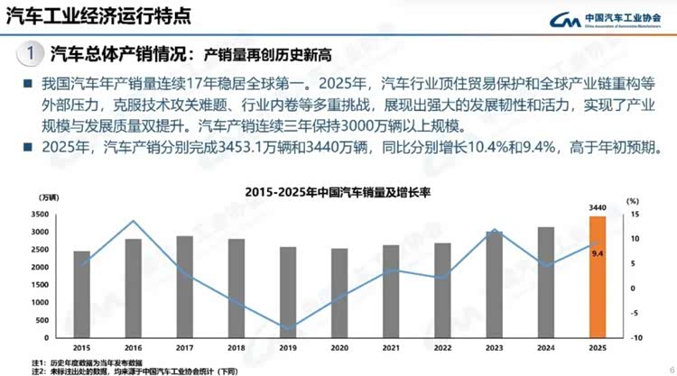双双突破3400万辆 2025年中国汽车产销规模创新高