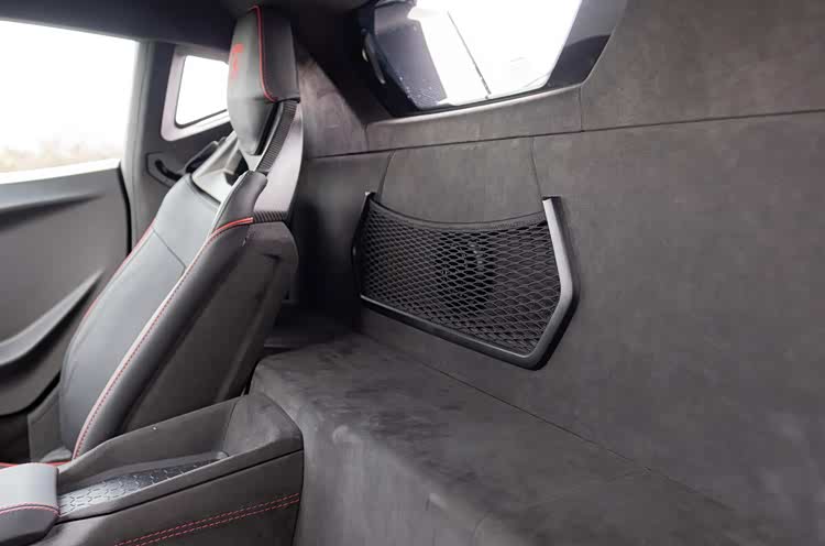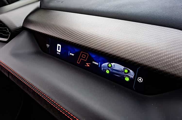 在内饰部分,该车进行了点到为止的现代化提升,中控液晶屏幕纵向排列尺寸不大,无法提供多少娱乐功能,主要是取代了大部分实体按键,包括悬挂,动力等各方面的调整都用触摸完成,而大部分信息交由悬浮式液晶仪表盘来担当,倒是有着丰富的显示效果,除此之外,缺乏储物格的问题依旧存在,符合超跑的灵魂,随处可见的翻毛皮,碳纤维面板覆盖,增强了运动感,方向盘有着复杂的功能按键,平底造型,回正标识,刺激驾驶者的运动神经,仪式感十足的一键启动机构得到了延续。