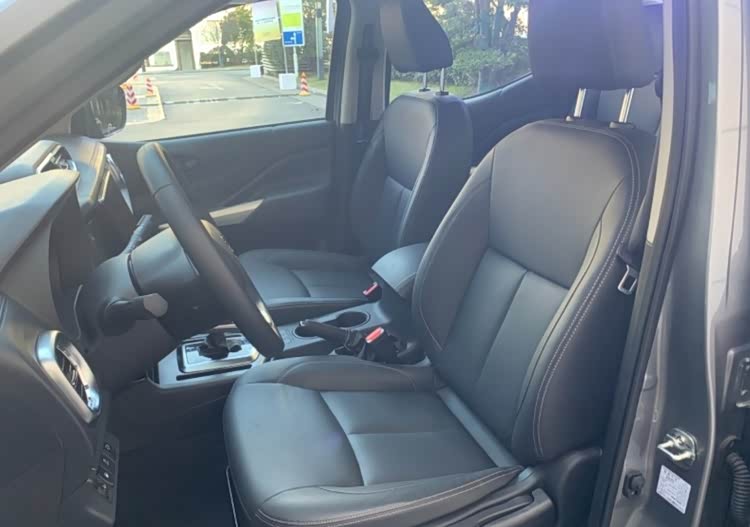 内饰以实用为主,采用黑色系布局,搭配参数化纹理饰板提升精致感。三辐式平底方向盘操作便捷,前方双圆形仪表盘数据清晰,中控台配备物理按键式收音机与空调控制系统,上手难度低,适配作业场景盲操作需求。安全配置上,AT车型全系标配ESC车身稳定系统,配合日产ZONE BODY笼型车身,高强度钢占比近50%,保障驾乘安全。