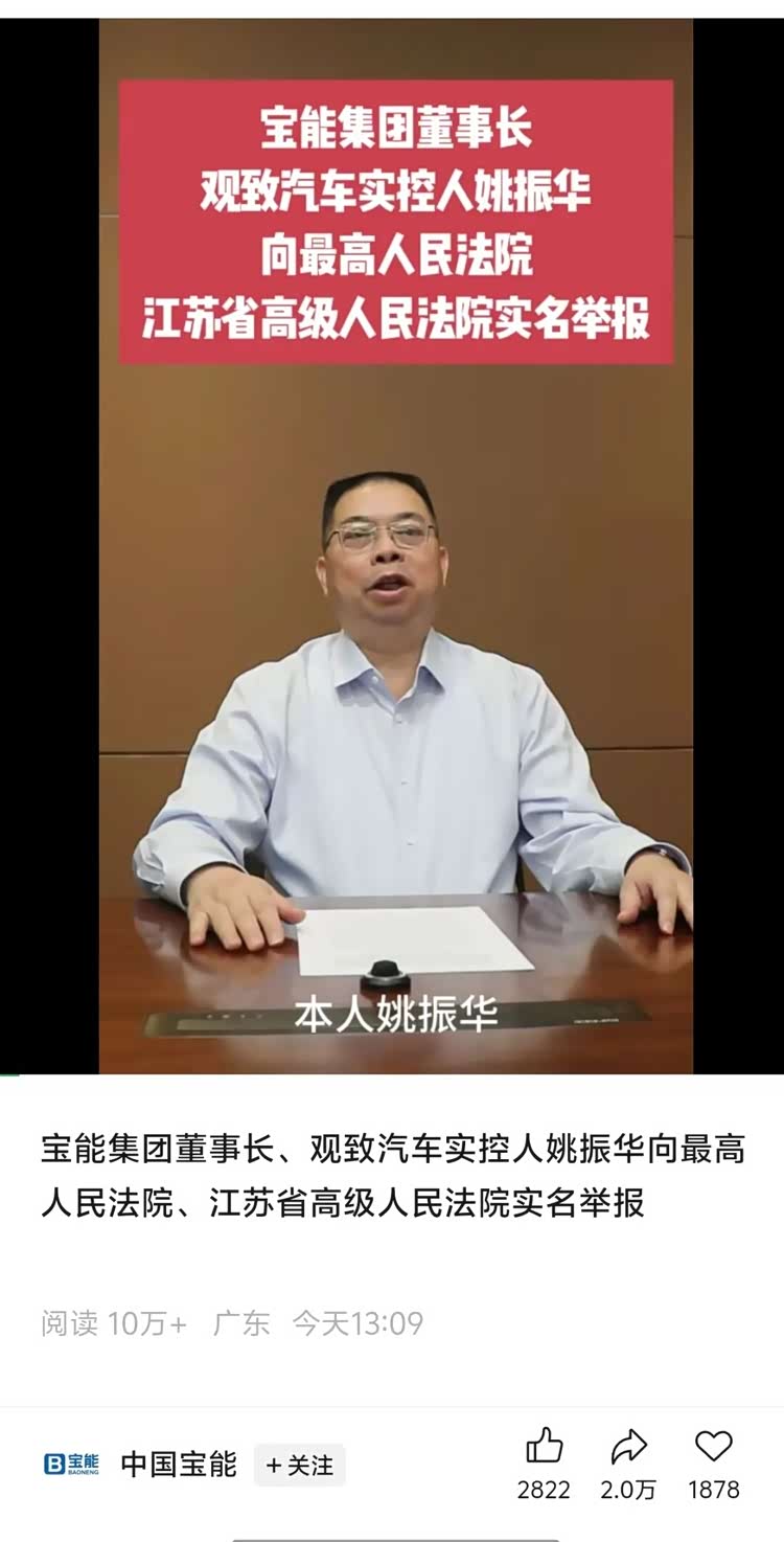 车家号·0浏览·2026-01-15 15:29 · 北京2026年1月14日,宝能集团董事长、观致汽车实际控制人姚振华通过“中国宝能”官方公众号发布实名举报声明,直指常熟相关部门在观致汽车2.7亿元执行案件中存在违法操作,举报对象涵盖最高人民法院与江苏省高级人民法院。