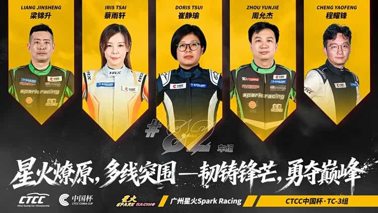 与此同时,参与CTCC中国杯TC-3组别的多位广州星火Spark Racing车手亦表现不俗。参加全年竞逐的82号车组先后迎来梁锦升、蔡雨轩、周允杰、程耀峰、崔静瑜五位车手参与,该车组由梁锦升/蔡雨轩于上海强势开局豪取一冠一亚,此后梁锦升/周允杰组合,梁锦升/程耀峰组合和蔡雨轩/崔静瑜组别均帮助82号车组实现颁奖台佳绩,该车组全年共实现六次登台斩获两冠三亚一季。