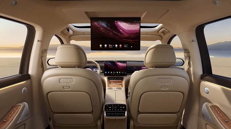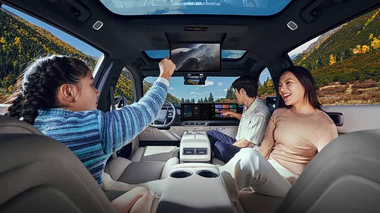 内饰方面,问界M7提供赤茶橘、星云红等4种配色,大面积覆盖软质材料,营造出温馨舒适的座舱氛围,同时还提供零重力座椅、冷暖箱、后排小桌板等实用配置。智能化打造上,问界M7搭载16.1英寸中控屏+10.25英寸全液晶仪表/副驾娱乐屏,后排提供17.3英寸娱乐屏,搭配最大68英寸AR-HUD抬头显示,形成多联屏组合,带来强烈的科技氛围。