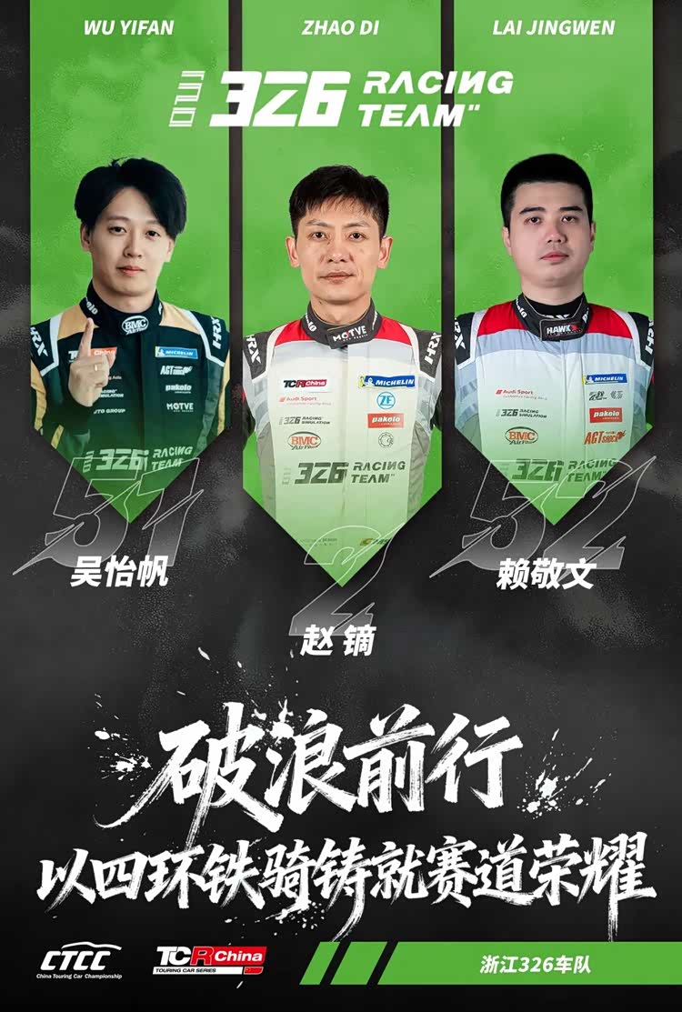 2025年度,浙江326车队由吴怡帆、赖敬文主攻TCR中国锦标赛,刘子辰参与TCR中国挑战赛角逐,并在CTCC中国杯TCR/TCS组别加大投入力度。经过六大分站十二回合决赛较量,吴怡帆在TCR中国锦标赛位列年度第六,赖敬文于TCR中国锦标赛挑战杯斩获年度第四。刘子辰率领浙江326车队豪揽TCR中国挑战赛年度车手杯、车队杯双料荣誉。浙江326车队81号车组摘得CTCC中国杯TCR组年度车手杯季军。