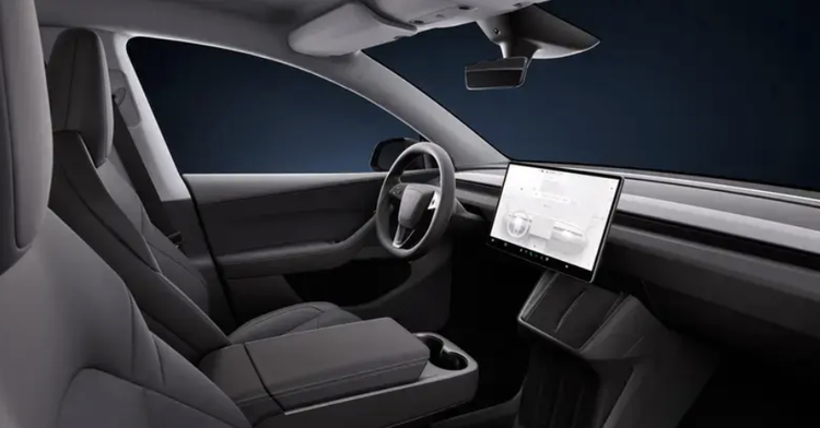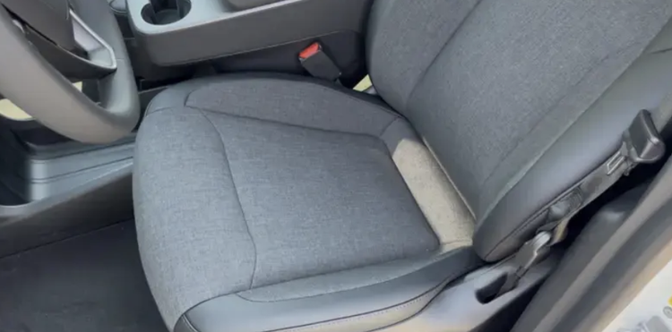 不仅如此,Model Y Standard取消了全景玻璃天幕,实际上这样也无伤大雅,毕竟这块“玻璃”在夏天时还是会给很多用户增添不必要的麻烦,不过车内氛围灯、双层夹胶玻璃、后排控制屏幕以及座椅通风等配置也同样得到了取消,座椅更换为织物、皮质拼接材质,方向盘调节也同样更换为手动,电子档把、转向灯拨杆同样没有搭载。
