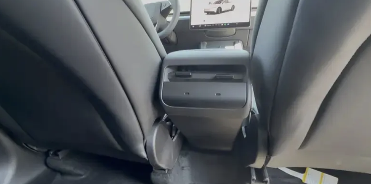 不过进入车内,笔者显然有些不淡定了。Model Y Standard依旧延续普通版Model Y的整体内饰设计风格,也就是大家口中俗称的“毛坯房”,不过还是可以清晰发现,Model Y Standard中央副仪表区域进行造型调整,手扶箱采用浮岛式设计,说的好听这样的“开口”设计可以提升中央储物能力,说的不好听“这点饰板也要节省吗?”