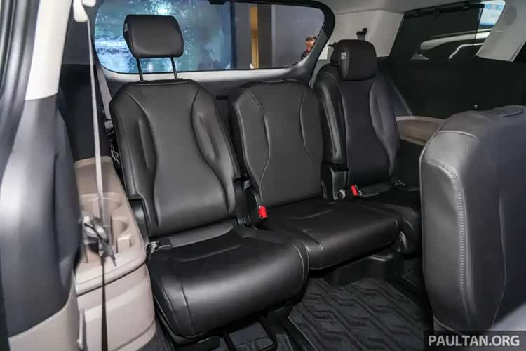 车内的科技感和豪华感营造的都不错,搭载了双12.3英寸联屏,整体向驾驶员一侧倾斜。车内还保留了一定的物理按键,上手难度还是比较低的。内饰用料根据版本的不同有所区别,11座版车型多采用仿皮材质,7座版车型升级为真皮座椅,并在前排加入通风与加热功能,同时驾驶座还具备记忆功能。配置上,全系标配电动尾门、无线充电、360全景影像、倒车雷达,7座版车型升级Bose音响、盲点监测、后方碰撞预警、车道保持等功能。
