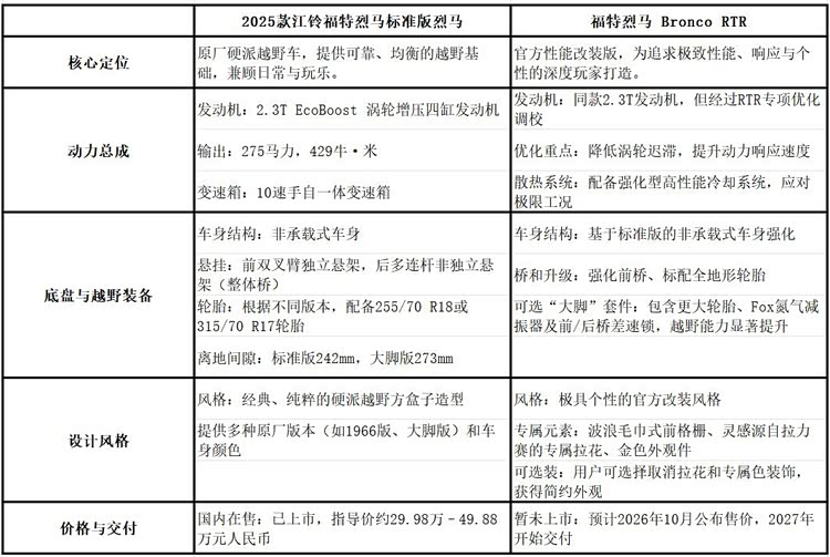 选车侦探观点:国产福特烈马保留海外车型造型的同时,从越野层面进行了分级,版本之间的差异大,价格区间大,从29.98万元至49.88万元不等,用户能够根据自己对越野深度、设计风格的偏好自由选择。烈马RTR则是出厂就完成进化的越野车,整体调校更激进,短板是更高的油耗。大家觉得烈马RTR怎么样?欢迎讨论。