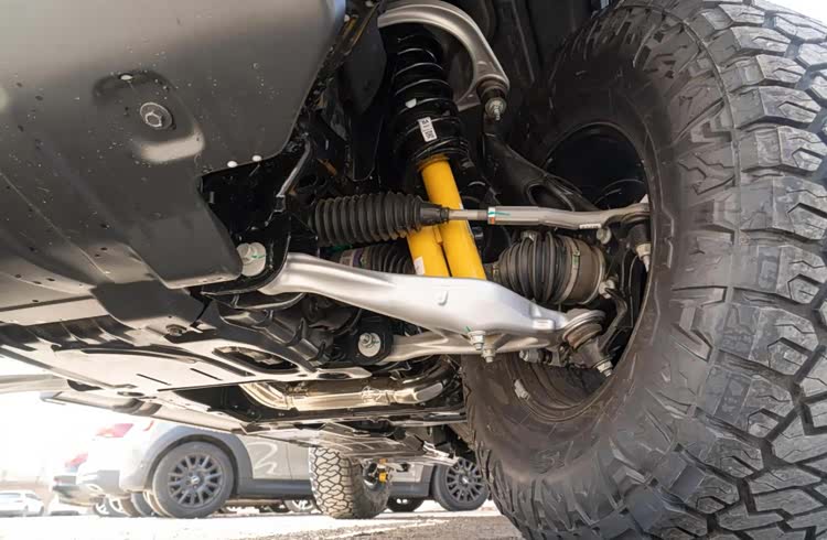 RTR版本在越野硬件上追求一步到位。标配抬升的底盘和全地形轮胎,官方提供大脚越野套件,包括35英寸超大轮胎、Fox高性能氮气减振器以及前/后桥差速锁,这与国产顶配的大沙丘版类似。