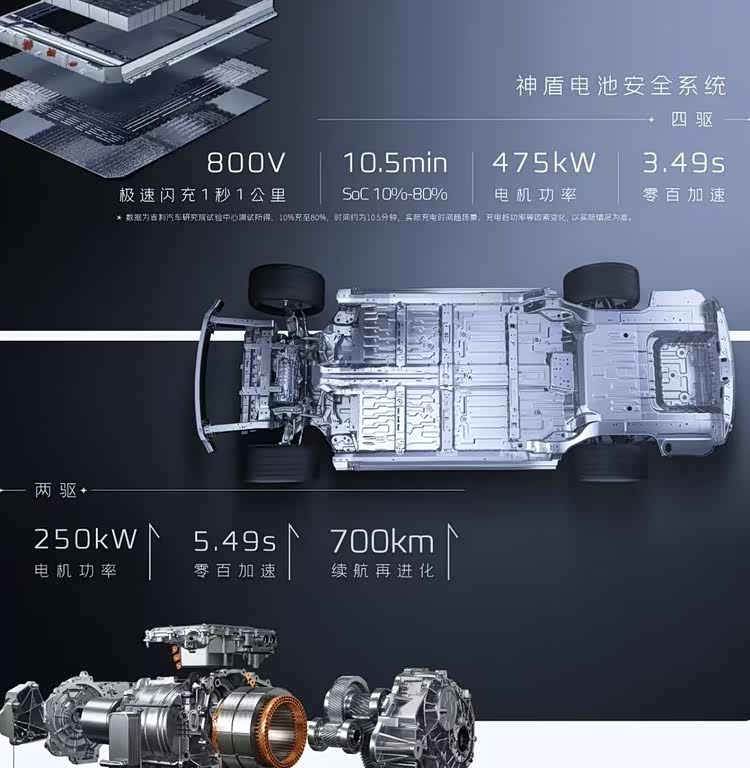 动力性能兼具激情与高效。双电机四驱版总功率达475kW,零百加速仅需3.49秒,起步瞬间的推背感直接点燃驾驶热情;后驱版搭载250kW电机,5.49秒破百的表现,满足日常超车、变道的所有需求。更难得的是其0.199Cd的超低风阻系数,优于保时捷Taycan,既提升了颜值,又降低了能耗,高速行驶100km可节省2.3度电,彻底打破“性能车=高能耗”的偏见。